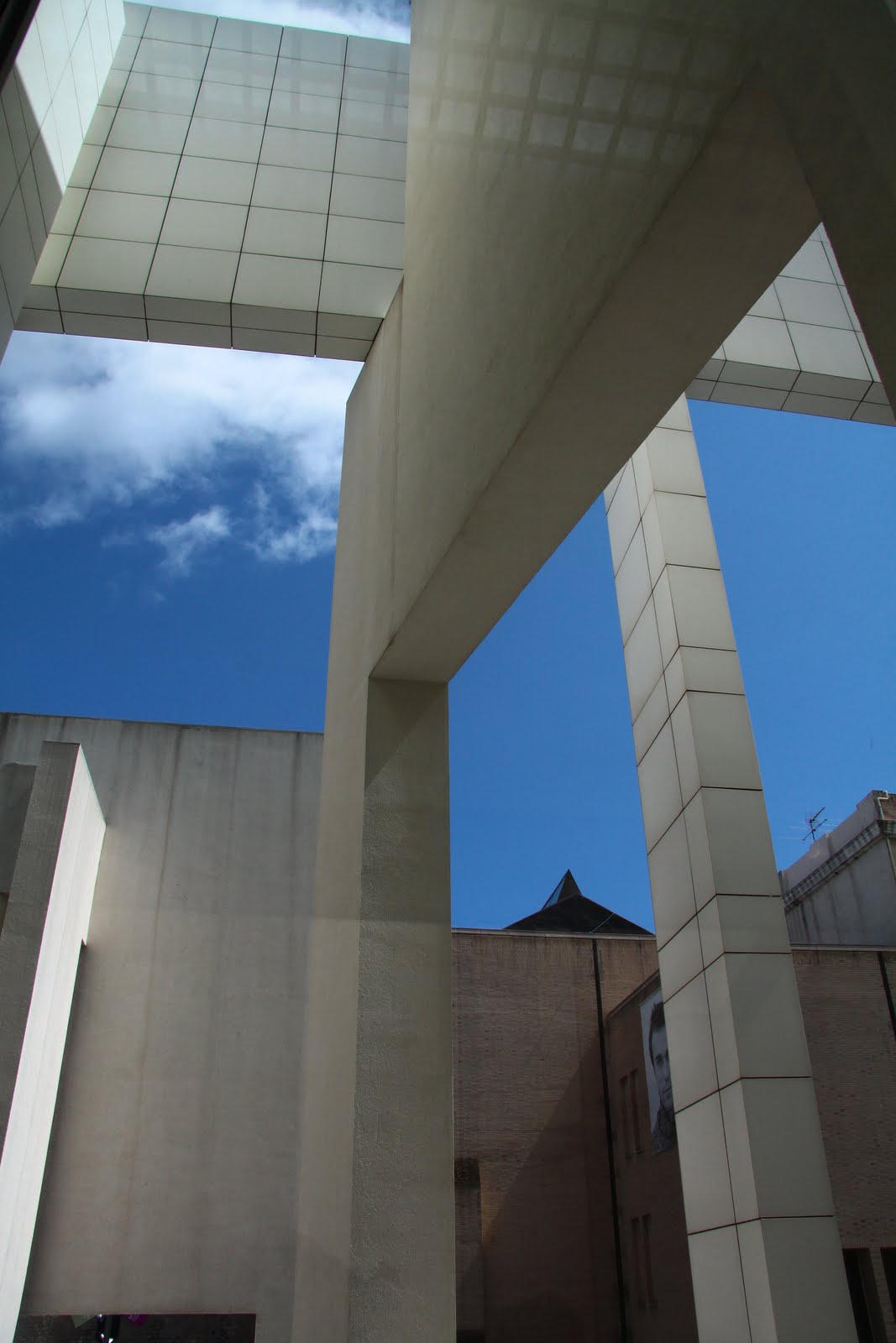 Ein letzter Eindruck überlegener deutscher Zentralfluchtpunktbaukunst. Der sich bewegende Weg zum neuen ICE-Bahnhof am Frankfurter Flughafen. Von aussen beeindruckend, von innen eher defekt.